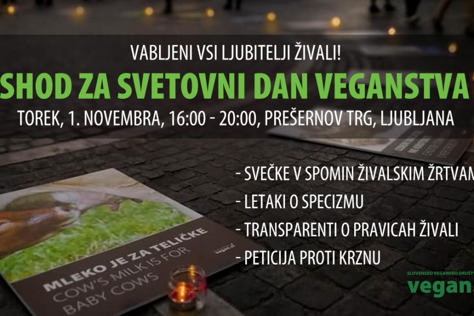 SHOD ZA SVETOVNI DAN VEGANSTVA KDAJ? Torek, 1. novembra 2022, 16:00 – 20:00. KJE? Prešernov trg, Ljubljana. – Svečke v spomin živalskim žrtvam –… Preberi več »Shod za Svetovni dan veganstva